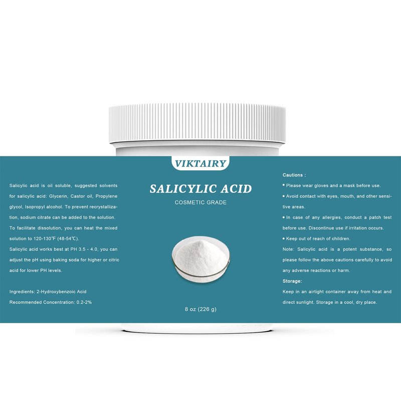 - Original Ingredients: Viktairy salicylic acid for skin is cosmetic grade, can be used in DIY cleanser, face wash, body wash, toner, spray, gel, lotion, shampoo, mask, serum, soap and face peel.