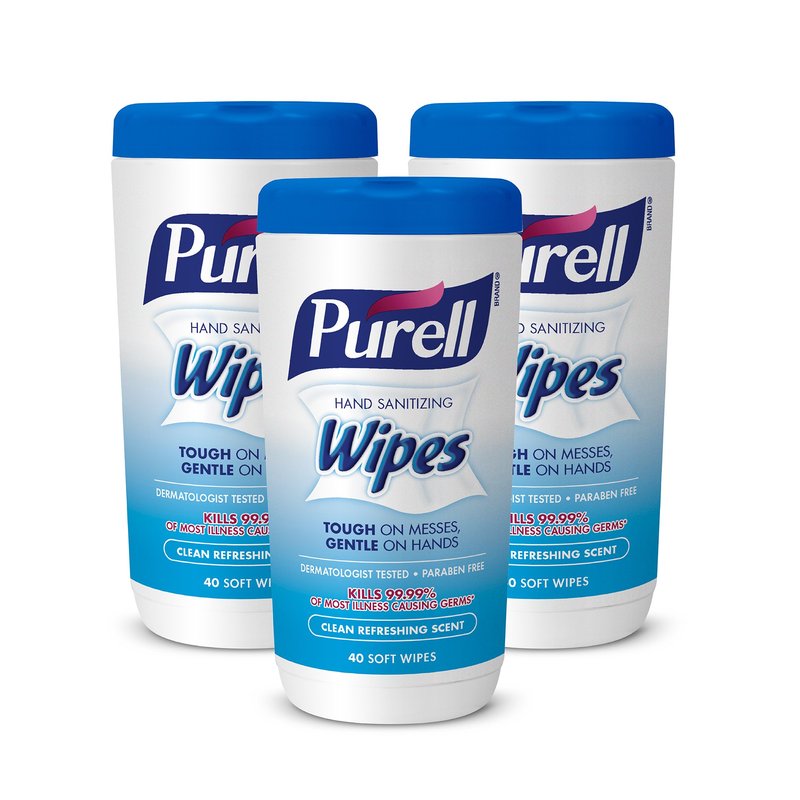 PURELL Hand Sanitizing Wipes, Clean Refreshing Scent, 40 Count Sanitizing Wipes Table Top Canisters (Pack of 3) - 9120-03-EC