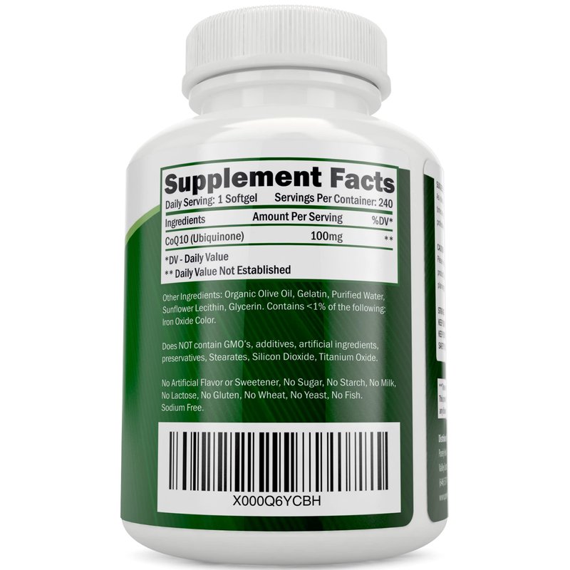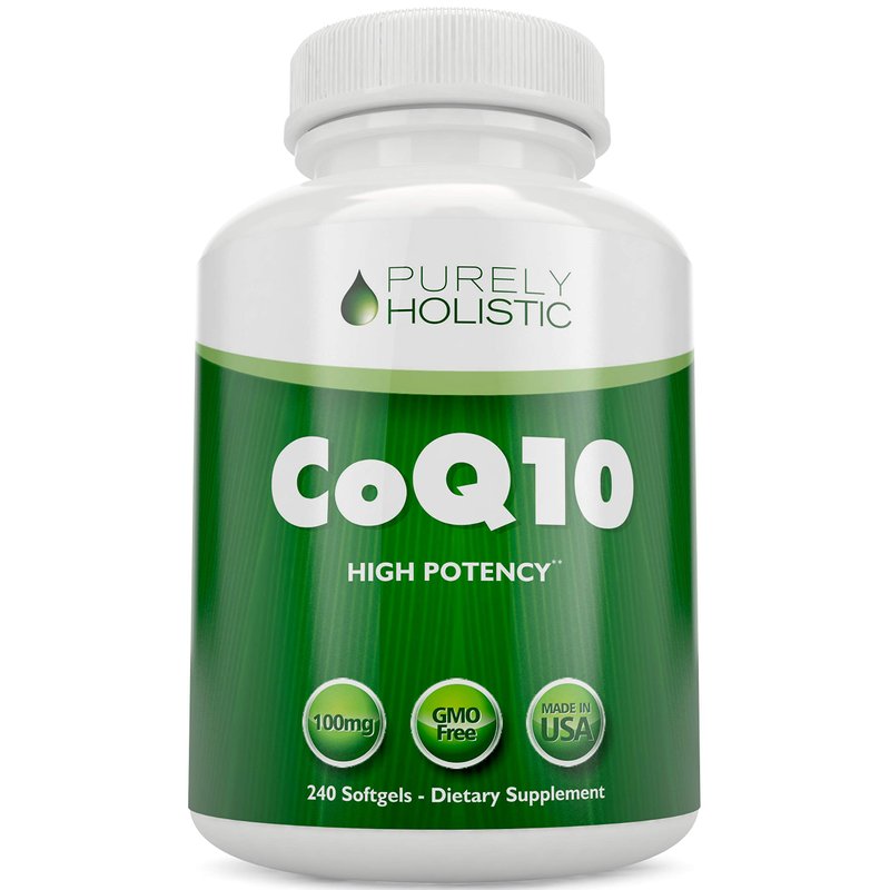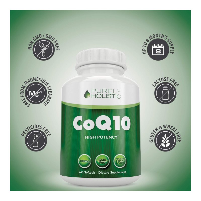 Purely Holistic CoQ10 100mg - 240 SoftGels - 8 Month Supply - Ubiquinone Coenzyme Q10 Supplement - with Organic Olive Oil - Soy Free Co Q 10 - Made in The USA