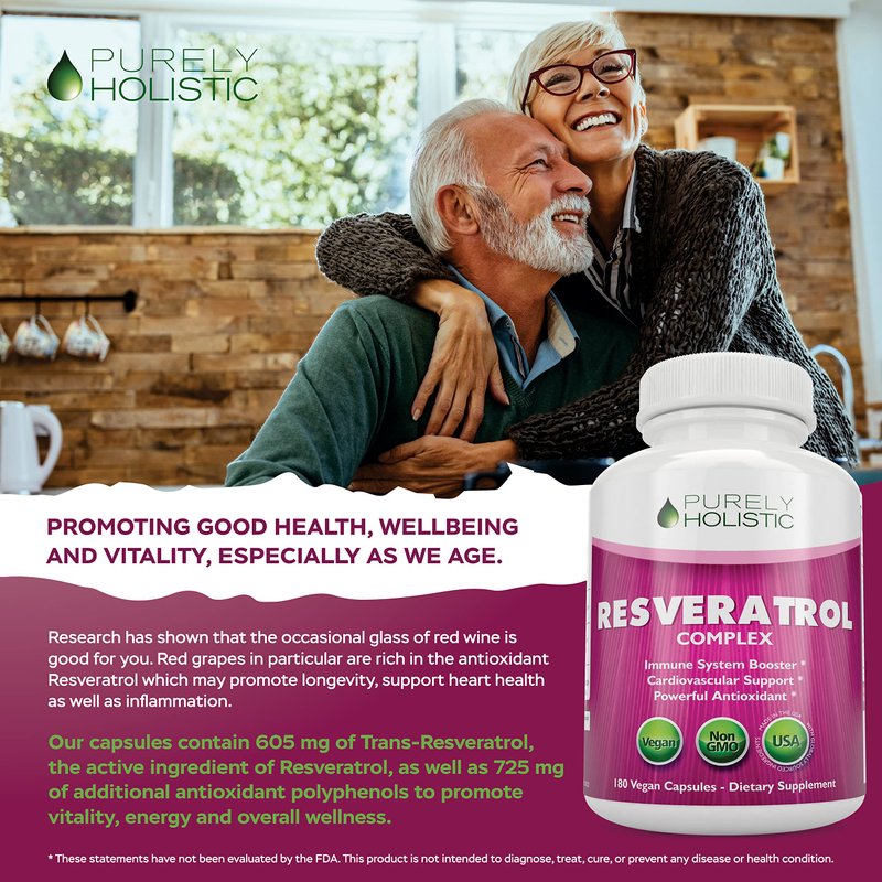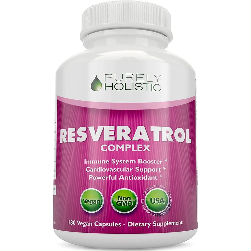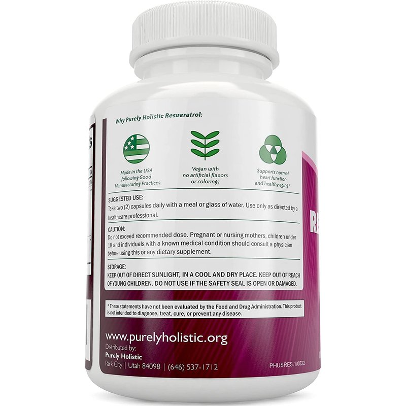 Purely Holistic Resveratrol 1450mg, 90 Servings, Trans-Resveratrol Antioxidant Supplement with Vitamin C and Polyphenol Complex, 180 Vegan Capsules, Promotes Anti Aging & Cardiovascular Health