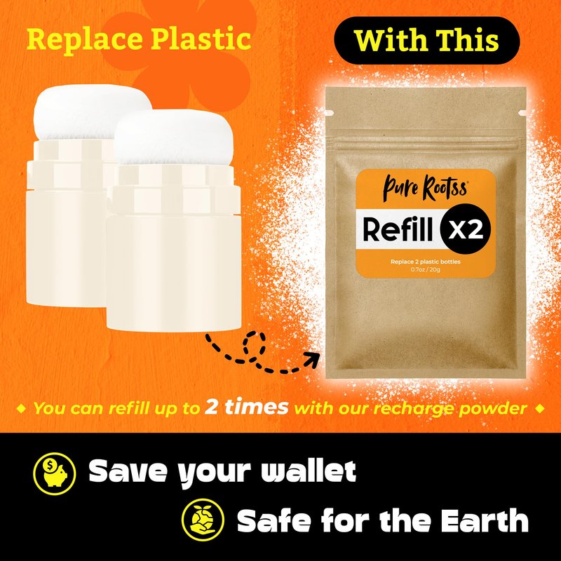 PureRootss Dry Shampoo Powder and Refill X2, Unscented, Non Aerosol, For Dark and Blonde Hair, Hair Volumizing, Mattifying Root, Travel Hair Styling Powder & Fuller Looking Refreshing
