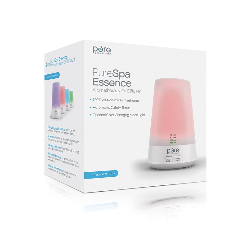 PureSpa Essence Aromatherapy Oil Diffuser – All-Natural Air Freshener with Optional Color-Changing Mood Light and Automatic Shut-Off Timer for Safe Home & Office Use