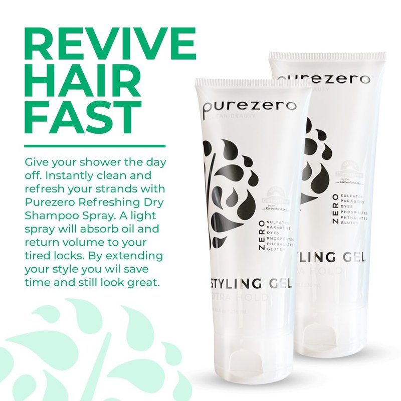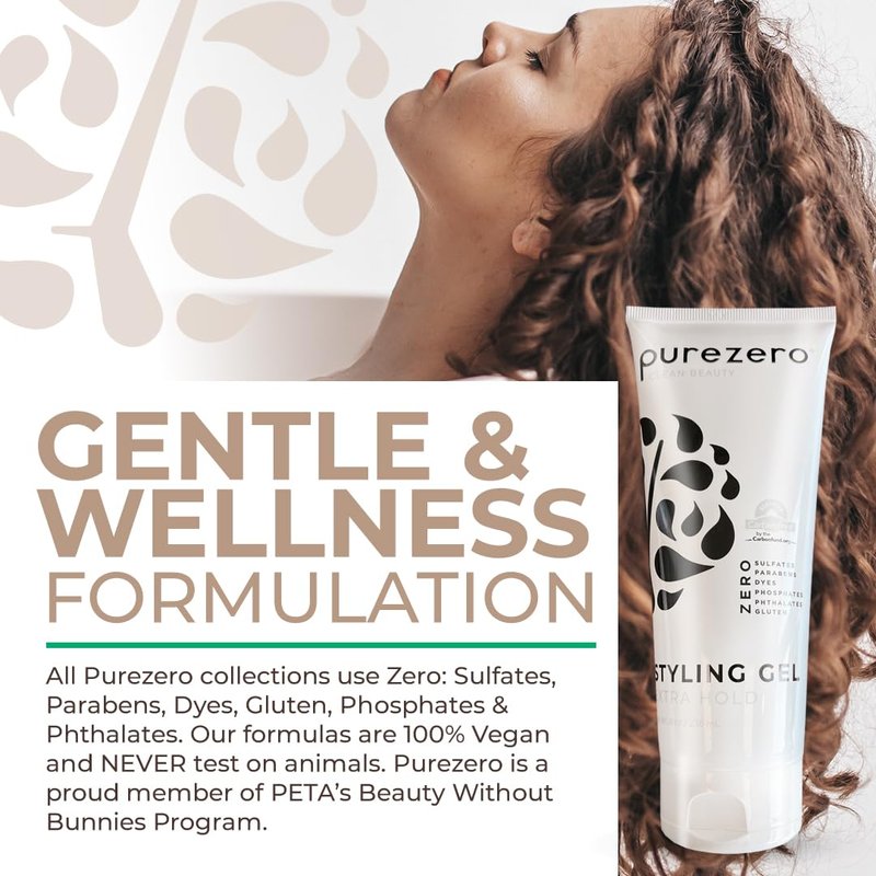 Purezero Styling Gel, Hold and Control, Adds Volume and Thickness, Non Greasy, Zero Sulfates, Parabens, Dyes,100% Vegan & Cruelty Free, Great For Color Treated Hair (8oz, 2 Pack)
