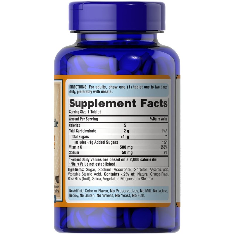 Puritan's Pride Chewable Vitamin C-500 Mg with Rose Hips Chewables, 90 Count