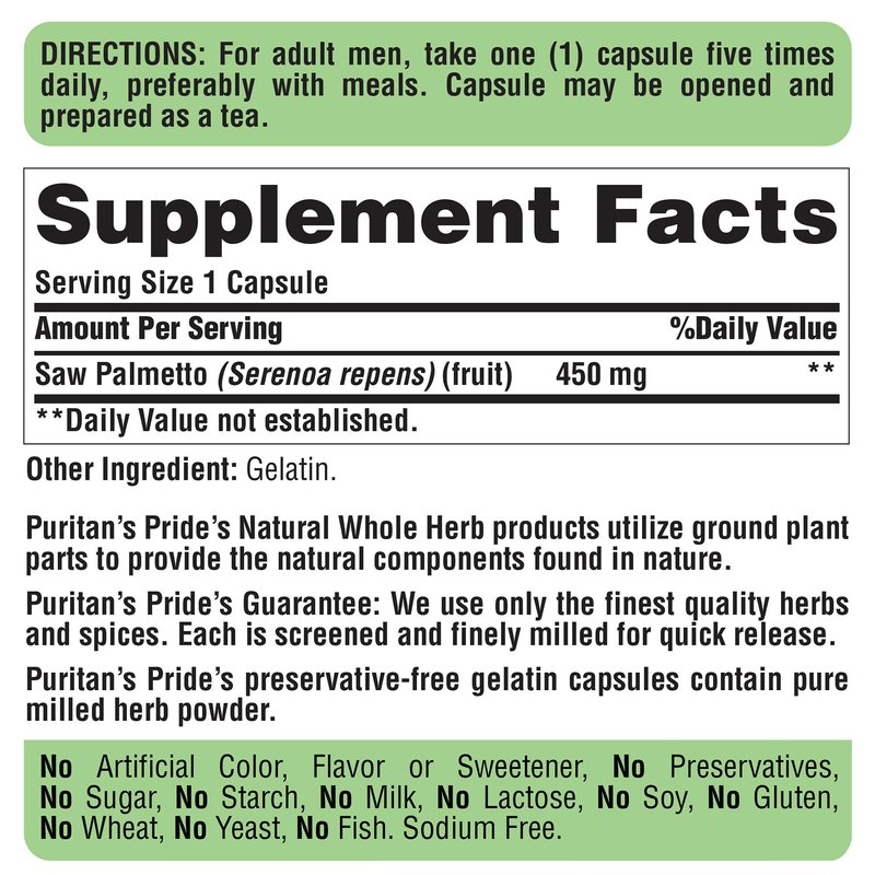 Puritan's Pride Saw Palmetto 450 Mg, Supports Prostate and Urinary Health, 200 Count