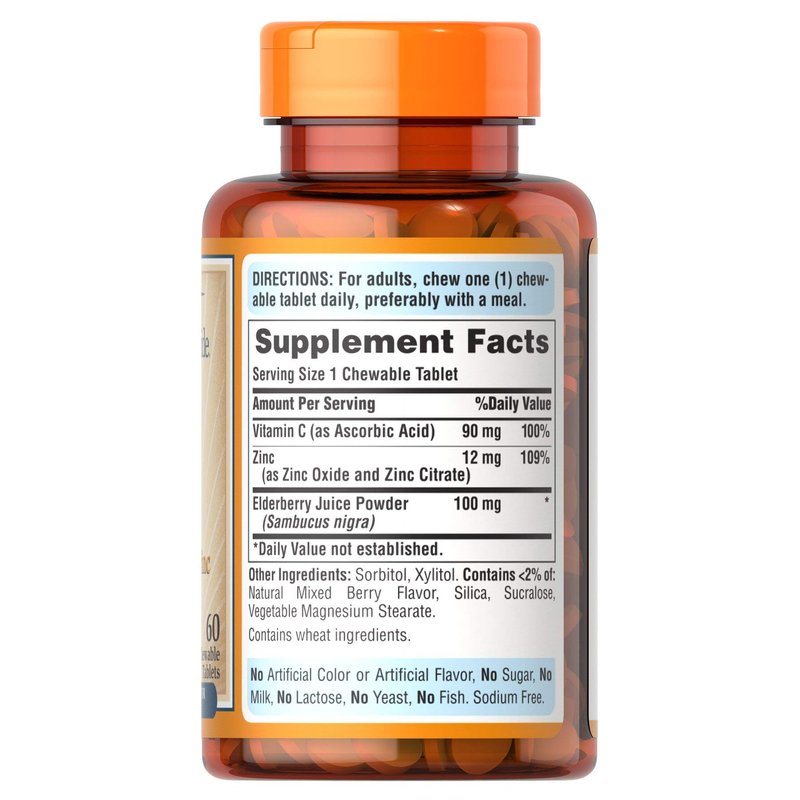 Puritan's Pride Vitamin C with Elderberry & Zinc for Immune System Support, Chewables, 60 Count (Pack of 1)