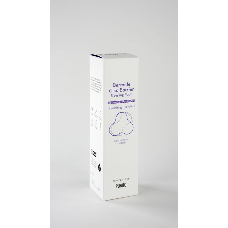 - This sleeping pack helps to soothe the skin exhausted from the damaging UV rays and other environmental stressors overnight. It is formulated with skin-identical ingredients like Hyaluronic Acid and Ceramide, which strengthen the skin barrier and protect it from the harmful environmental stressors. This product forms a healthy moisture barrier that prevents water loss and keeps skin well-hydrated overnight. Treat your sleep-deprived skin with PURITO Dermide Cica Barrier Sleeping Pack.
