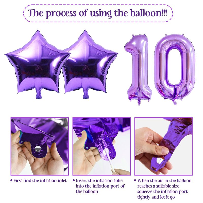 - After-Sales Service: Warm Reminder: Do not fill the balloon with too much gas, 80% -90% is enough. You can feel free to contact us if you have any question with our purple double digits 10th birthday decorations pack