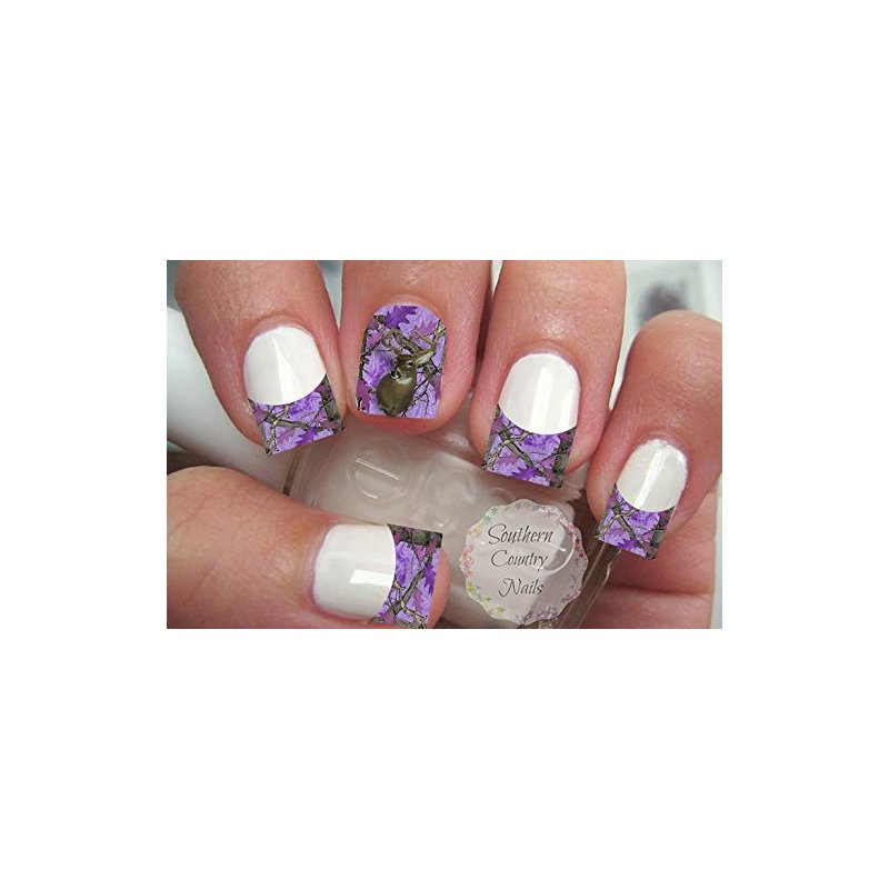 Purple Camo Deer French Tips and Full Nail Art Decals