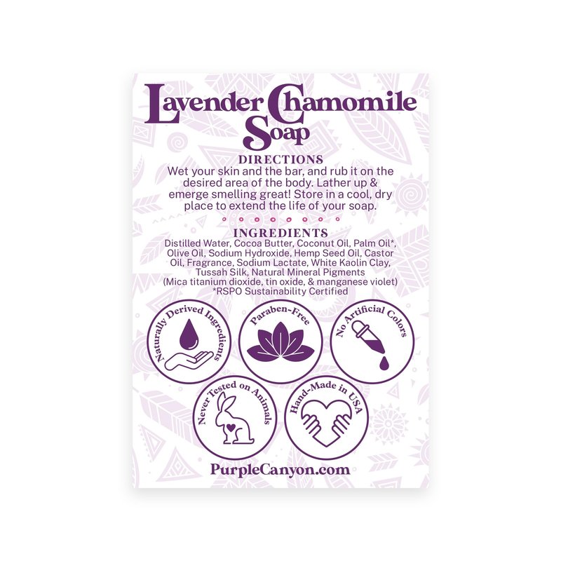 Our luxurious handmade soap is great for your skin and will leave you smelling fantastic. Our all-natural soaps are made with a special recipe of natural ingredients and mineral pigments. This combination produces a soap that is gentle on your skin, leaving it feeling soft and silky. Our 3 pack of natural soaps is the perfect way to keep your skin clean and hydrated. The 3 Pack Soap is made with all-natural ingredients, including coconut oil, lavender & chamomile scent, and enriched with tussah silk to create a soothing lather. The purple canyon logo is etched into every bar in our studio. We love these soaps and hope you will too!