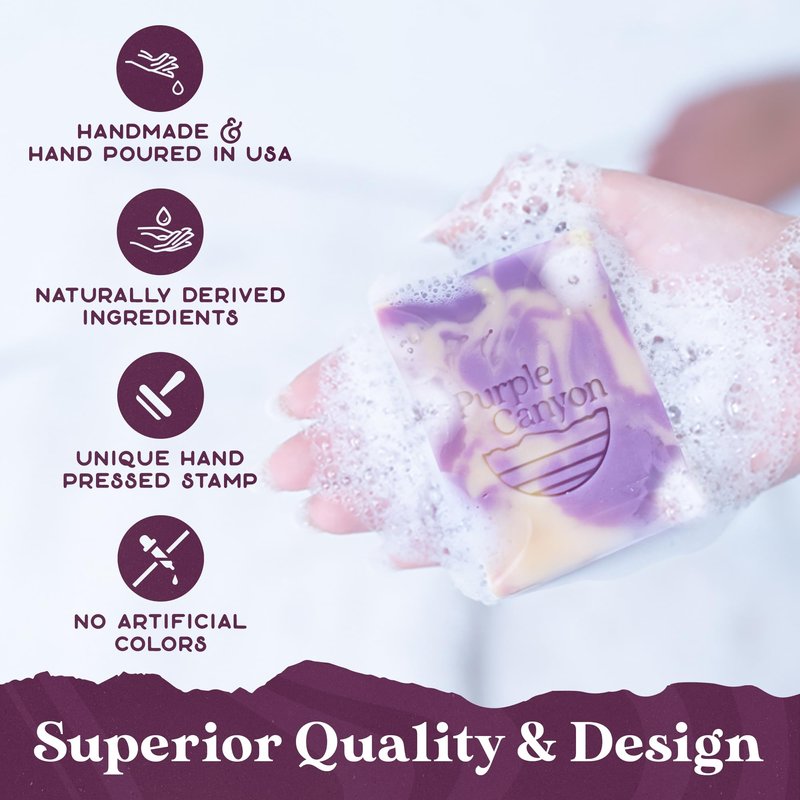 - YOU'RE GOING TO LOVE THIS: Purple Canyon uses only the highest quality ingredients to create our unique scents, and we are confident you’ll love them! We stand behind our products! If you’re not satisfied with your handmade soap set, then our team will gladly work with you on a resolution.