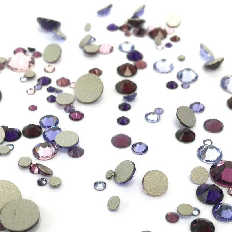 PURPLE Colors mixed with Swarovski 2058 Xilion / 2088 Xirius Rose flatbacks sizes ss5, ss7, ss9, ss12, ss16, ss20, ss30 No-Hotfix rhinestones nail art 144 pcs (1 gross) from Mychobos (Crystal-Wholesal