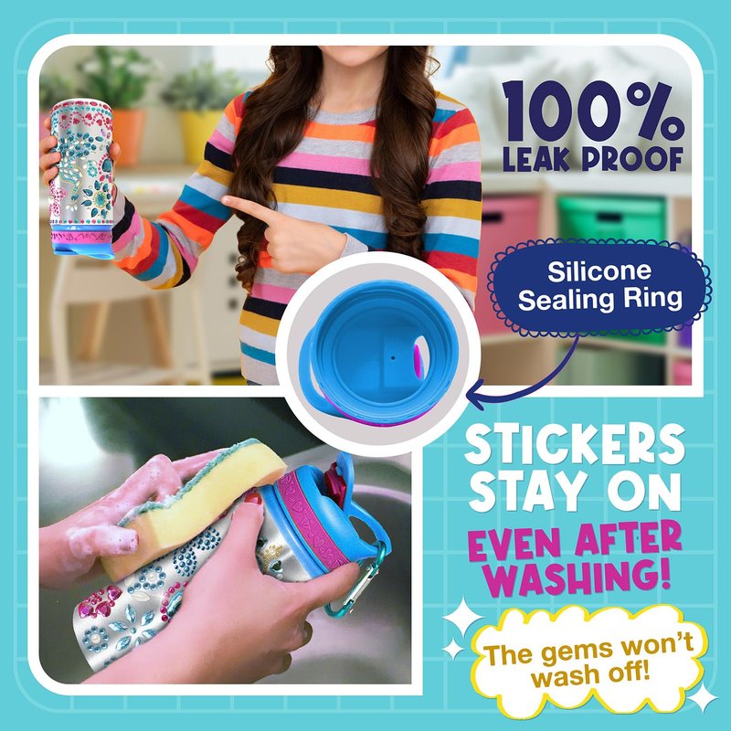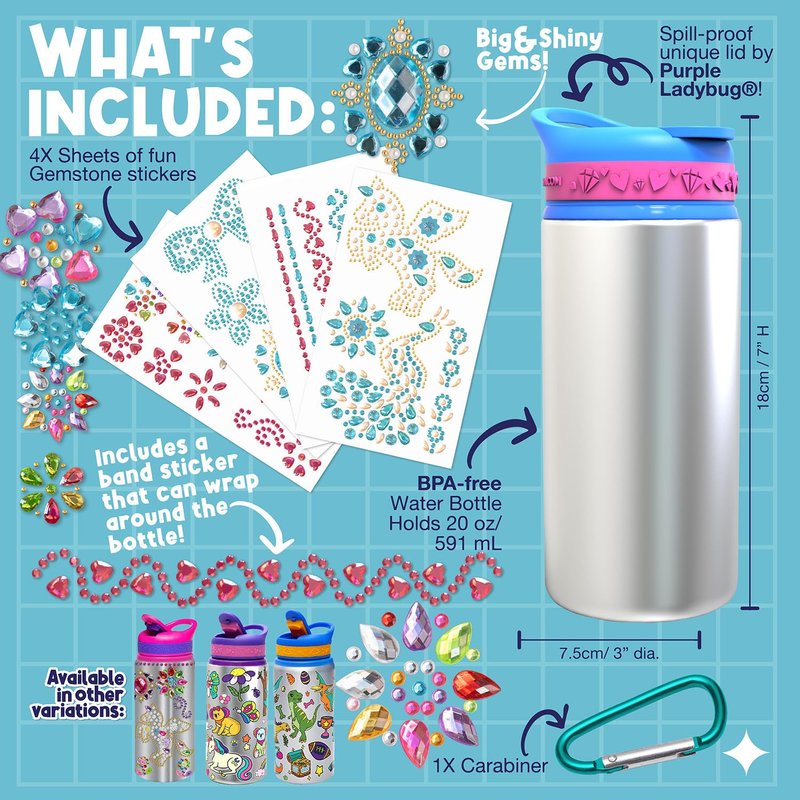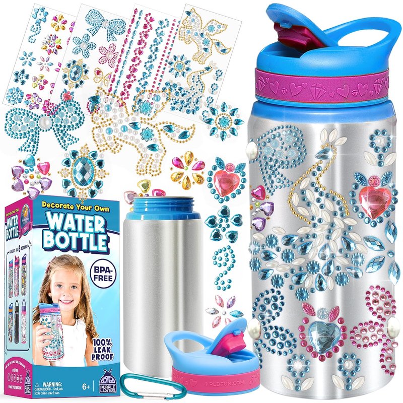 - Super fun crafts for girls! Kids decorate their own bottle with this teal kids water bottle craft kit! It comes with 4 sheets of rhinestone glitter gemstone stickers, giving kids hundreds of our sparkly glitter gem stickers to bling out their bottle! Plus we include a carabiner to hang the bottle.