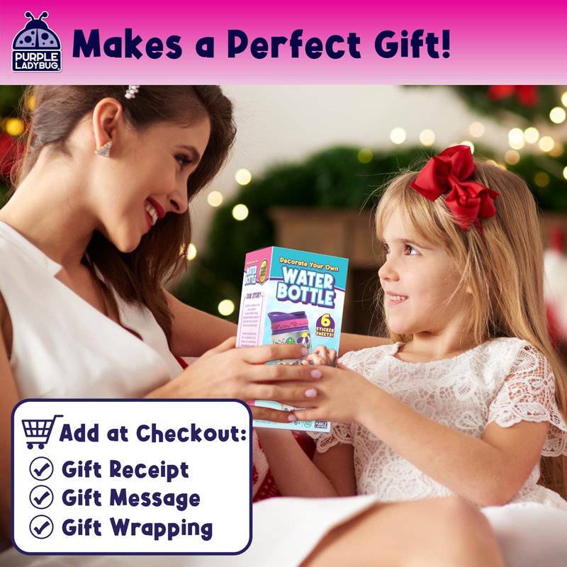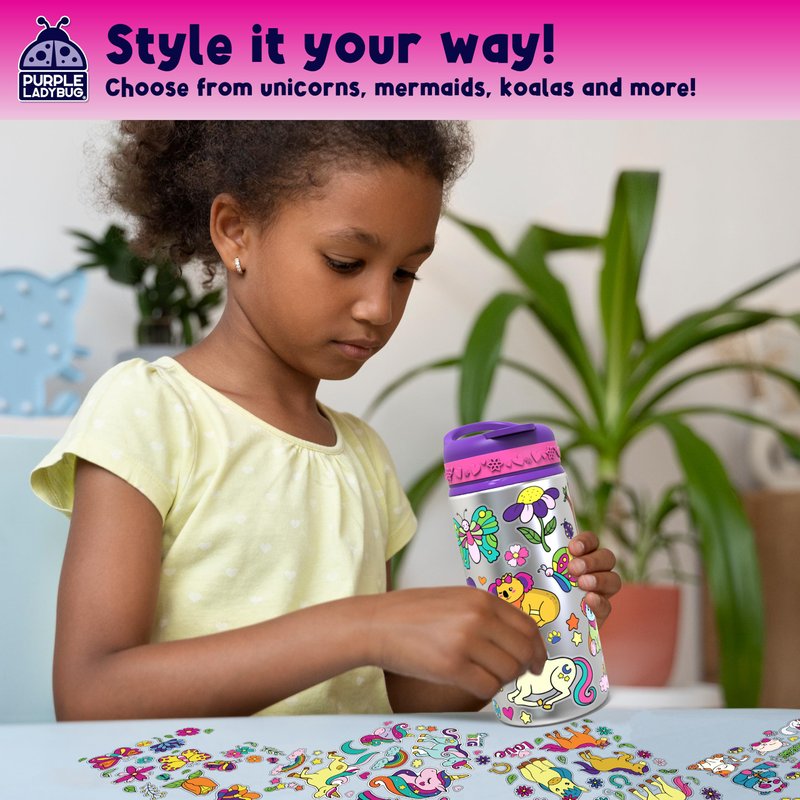 PURPLE LADYBUG Decorate Your Own Water Bottle for Girls with Trendy Stickers - 5 6 7 8 Year Old Girl Birthday Gift, Little Girl Gifts, 5 Year Old Girl Gift, Christmas Gifts for Kids