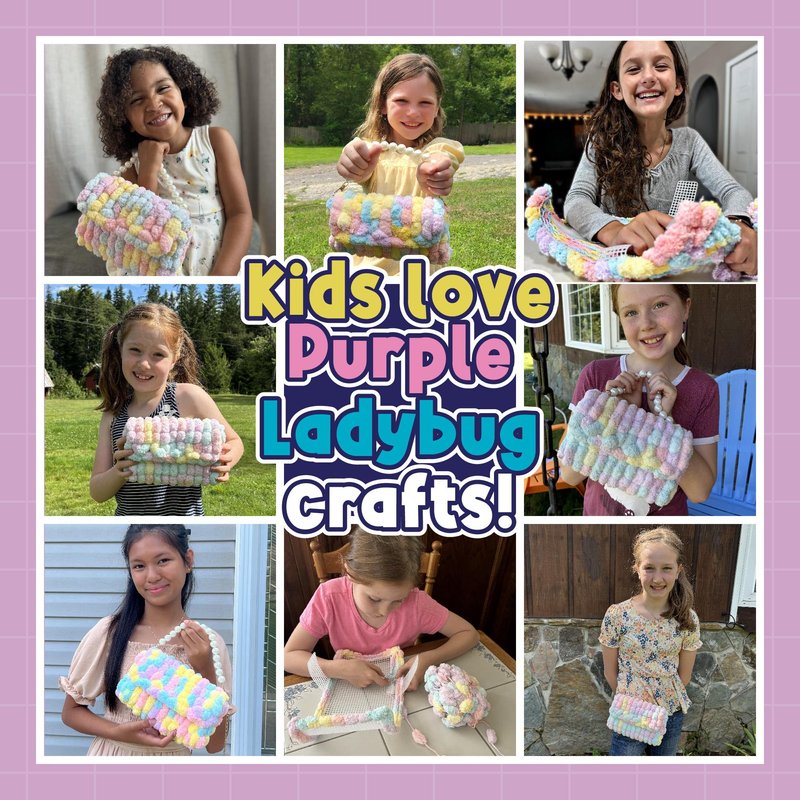 PURPLE LADYBUG Make Your Own Pom poms Purse Kit - Arts and Crafts for Kids Ages 6-8 Girls, Crafts for Girls Ages 6-8, Gifts for Girls 6 7 8 9 10 Year Old, Birthday Gifts, Christmas Gifts for Girls