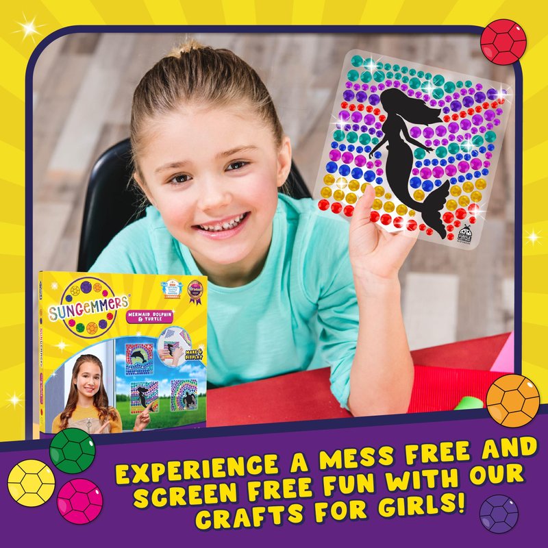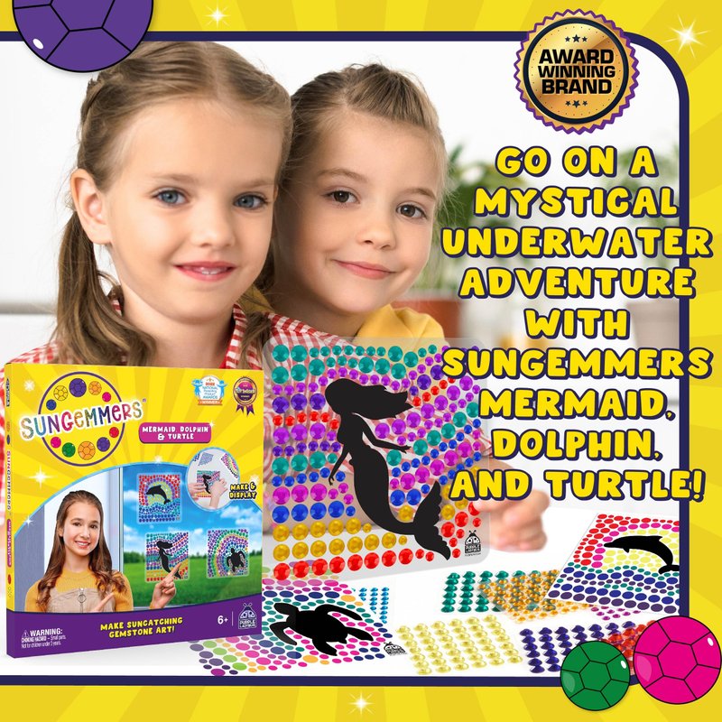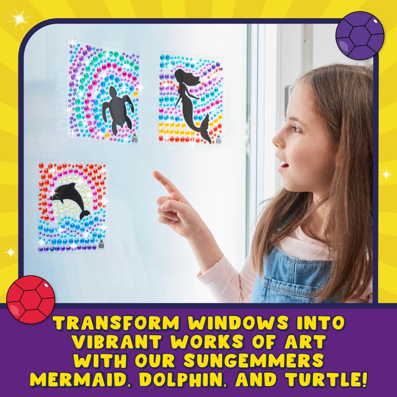 - UNLEASH YOUR KIDS' CREATIVITY! Enhances fine motor skills & cognitive development. Create stunning 6x6-inch Mermaid, Dolphin & Turtle designs that is vibrant, eye-catching, durable, & securely sticks to windows, adding a touch of sparkle to any room.