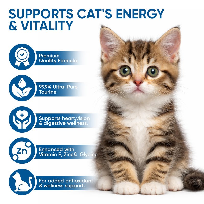 - 【Supports Heart, Eye & Immune Wellness】Taurine supplement help maintain healthy heart function, clear vision, and a strong immune response in cats. a daily source of taurine to support overall feline vitality.