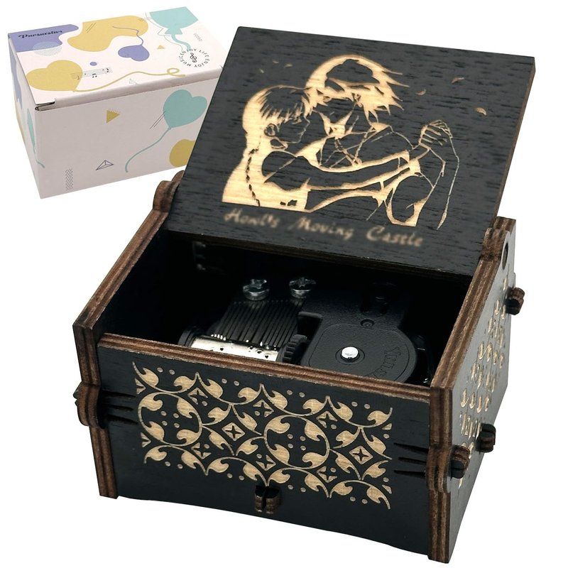 Pursuestar HowlMoving Castle-Merry Go Round of Life Wind Up Music Box, Vintage Engraved Wood Mechanism Musical Gifts for Birthday Valentine's Day Christmas Thanksgiving