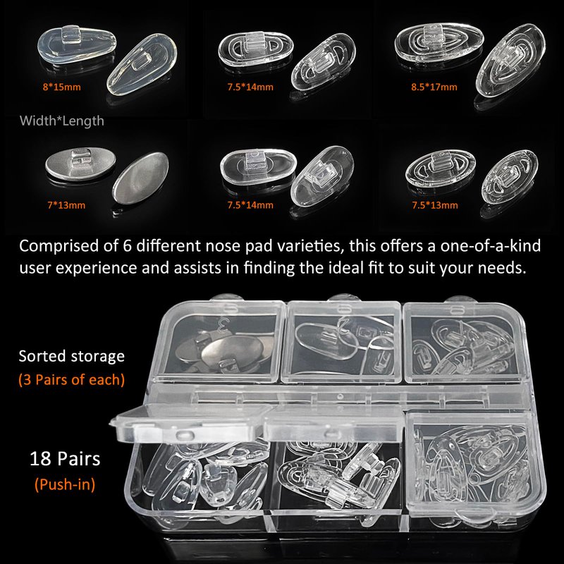 - With 18pairs nose pads in total and 3pairs of each type, you will always have a backup when you need it the most.