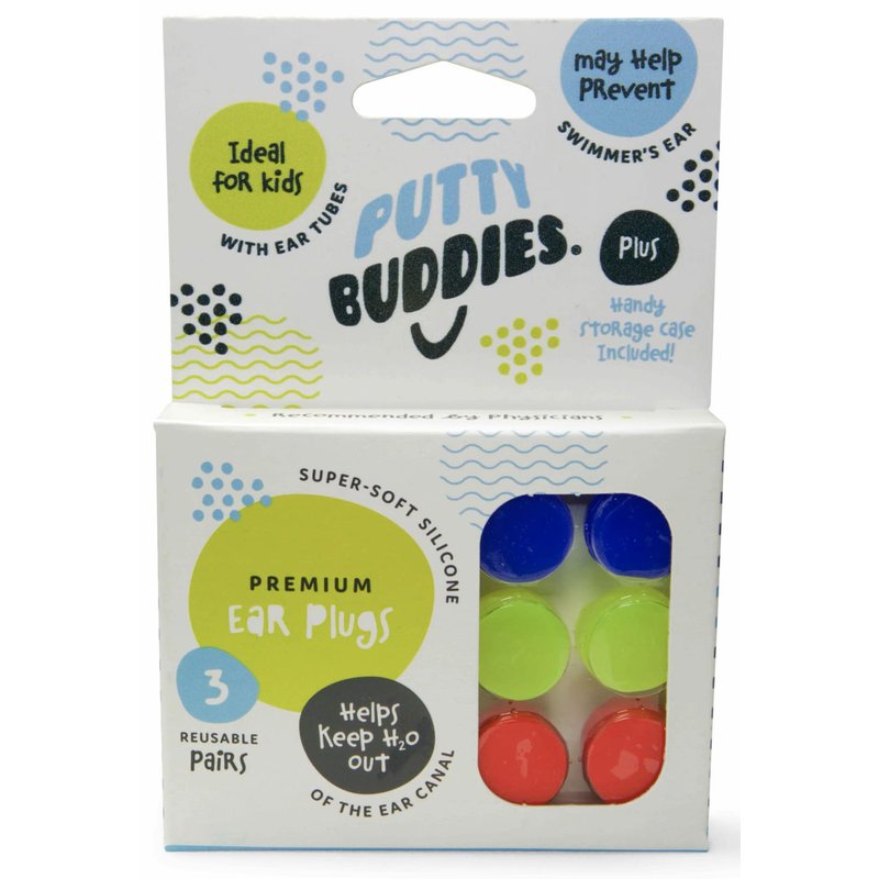 PUTTY BUDDIES Original Swimming Earplugs, 3-Pair Pack (Red/Blue/Yellow)
