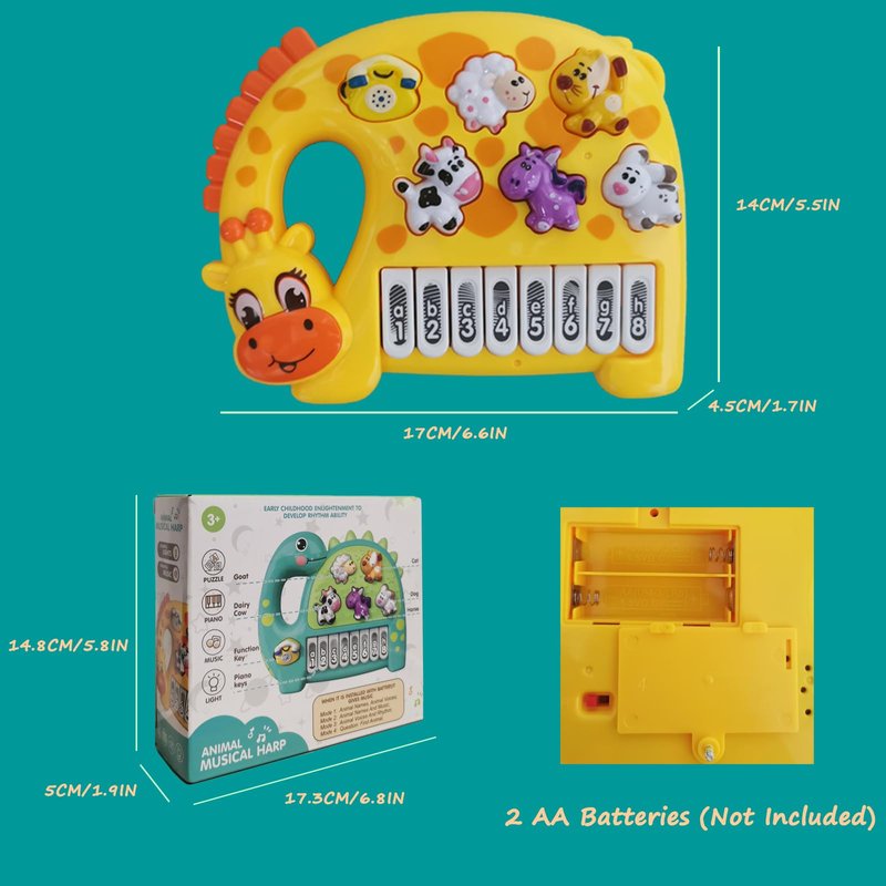 - Portable Animal Piano Toys: Baby musical toy made of ABS plastic, designed with smooth edges and corners. Kids piano toy requires 2 x 1.5V AA non-rechargeable batteries (not included), easy for kids to carry. It's light, designed for little hands, can be as entertainment toys for daily life, and also as travel toys, outdoor toys and camping toys.