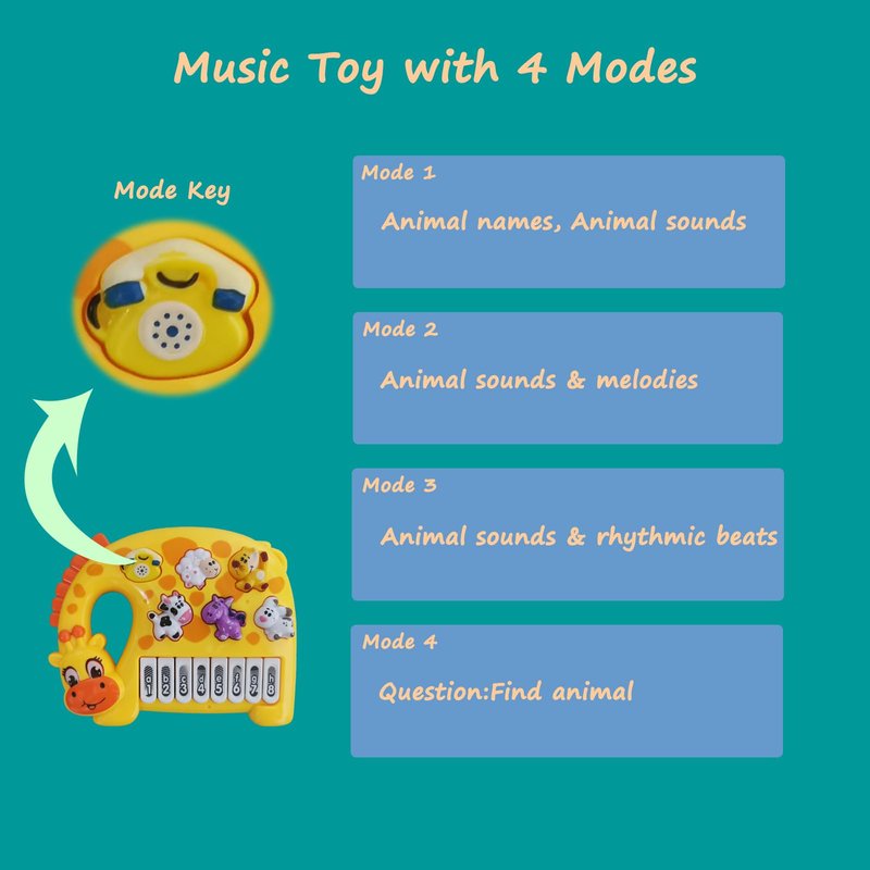 -Electronic piano toys for kids with 5 different animal sounds ( sheep sounds, cat sounds, cow sounds, horse sounds, dog sounds ), help inspire kids to listen and recognize.