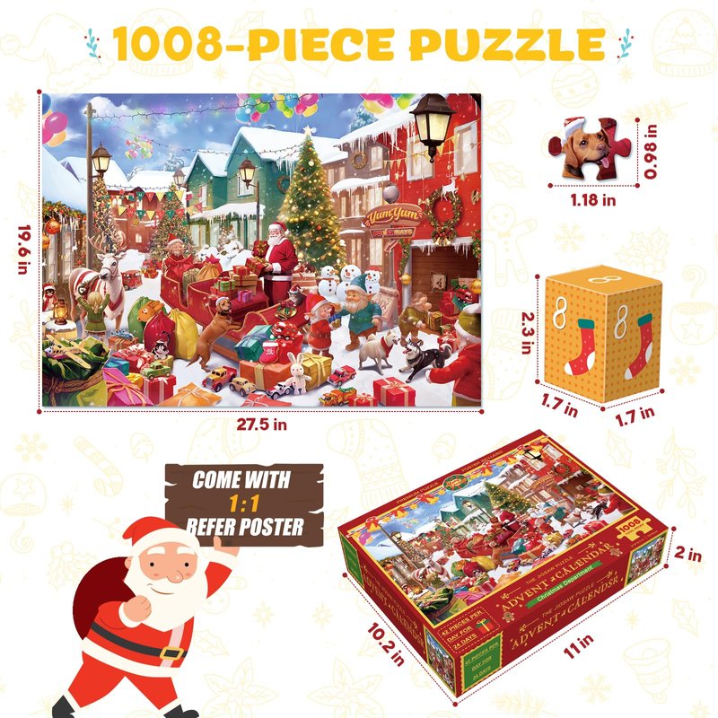 Puzzle Advent Calendar 2024 for Kids and Adults, 24 Days Christmas Countdown Calendars for Boys Girls, 1008 Pieces Christmas Puzzle in 24 Boxes, Lively Christmas(27.56 x 19.68 Inch)
