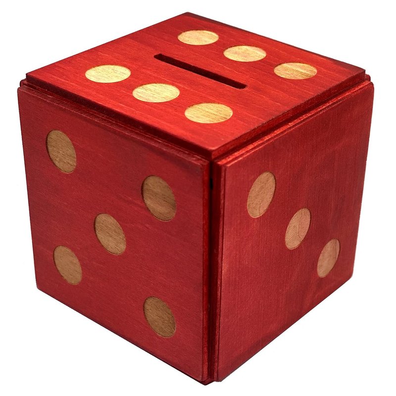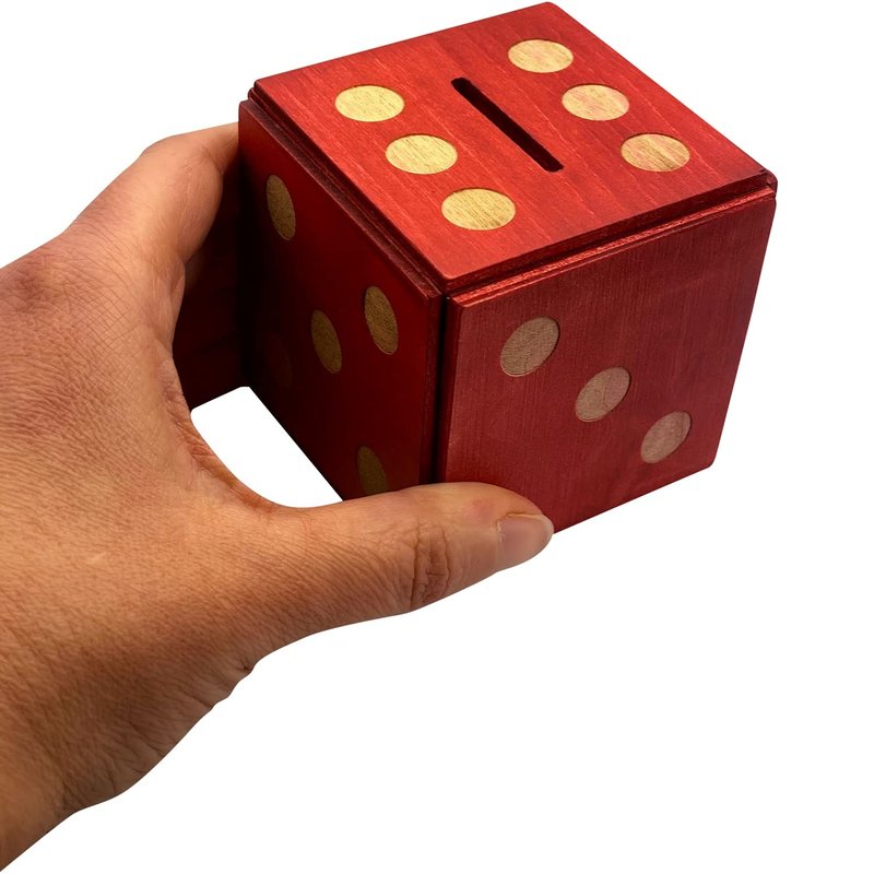 This is a great puzzle box designed to look like a Dice cube to use for, money gift given or to hold money, and small jewelry for safe keeping. This great secret puzzle box is a very popular gift that teases the recipient to unlock the surprise within. Made all of wood. Can you solve this secret puzzle? Your mission, if you accept it, is to open the "Secret Puzzle Box". You have to decide what to store here, the decision is yours. The box has a piggy bank slot to insert / drop coins or bills into the box. Inner compartment size is: 2.25"L x 1.5"W x 1.75"H