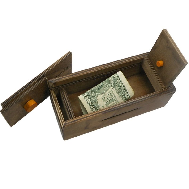 - Slide your coins and bills through this clever box, then solve the challenging solution to opening it.