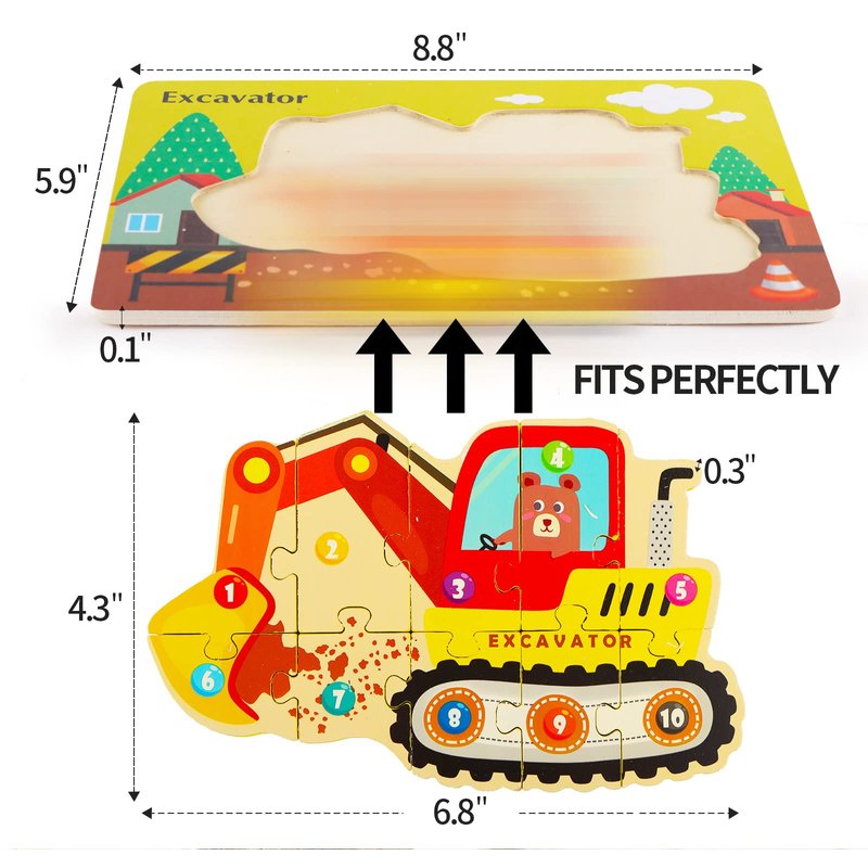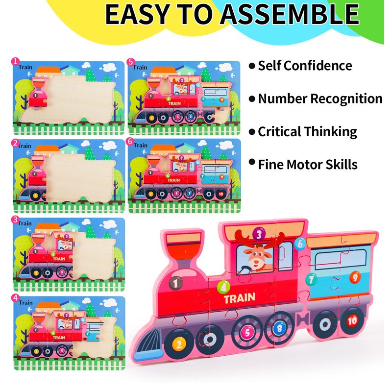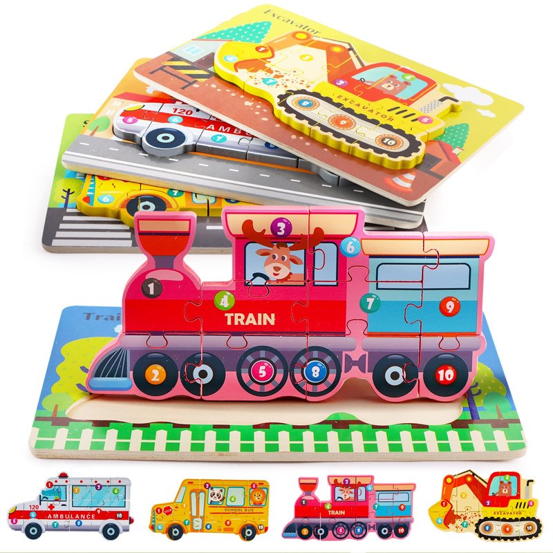 - ✿【Wooden Puzzles for Toddlers】4 individually wrapped Wooden Jigsaw Puzzle for kids. Easy, funny, wonderful- educational toys, develops hand-eye coordination, fine motor skills and creative thinking. 4 Theme Set:School bus, Train Ambulance, Bulldozer