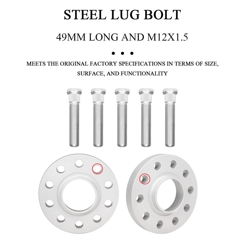 - 【Specifications】The thread size of these long lug studs is M12x1.5, the thread diameter is 12mm, and the thread length is 49mm. There are five pieces of wheel studs in the package, does not include wheel lug nuts. It is recommended that you use a professional stud installation tool to install the wheel studs to protect your hands.