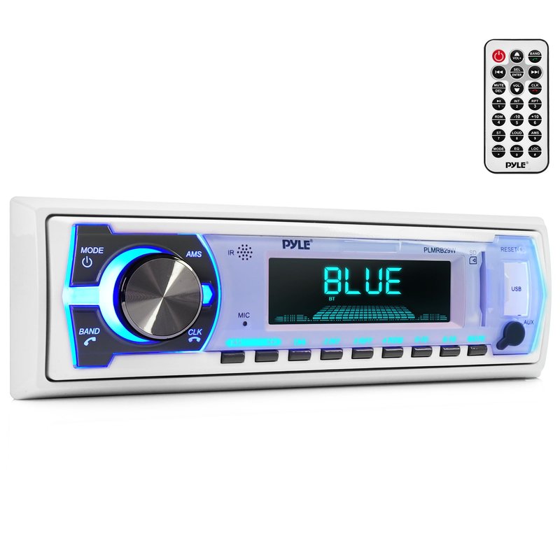 Pyle Marine Bluetooth Stereo Radio - 12v Single DIN Style Boat In dash Radio Receiver System with Built-in Mic, Digital LCD, RCA, MP3, USB, SD, AM FM Radio - Remote Control - PLMRB29W (White)