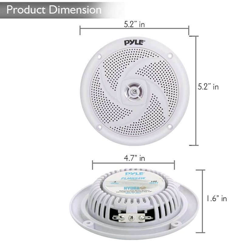 - EASY INSTALLATION: These marine speakers are easy to install with the 9.8 feet wirings that comes with the package. It also has a universal standard OEM replacement size with a total speaker diameter of 5.2 inches and mounting depth of 9 inches