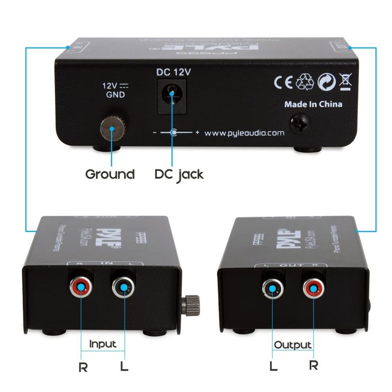 - SIMPLE PLUG & PLAY: This mini preamp has stereo RCA inputs and stereo RCA outputs. Connect the turntable to the RCA inputs and ground. Then, connect the amplifier receiver to the RCA outputs