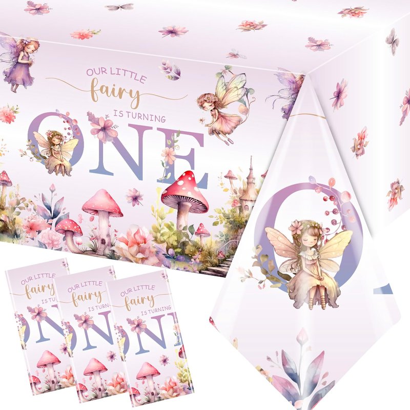 Pymurod 3pcs Fairy First Birthday Decorations Fairy One Tablecloth Little Fairy Garden Table Cover, Fairy 1st Birthday Party Supplies Floral Fairy Table Cloth Baby Shower Decorations
