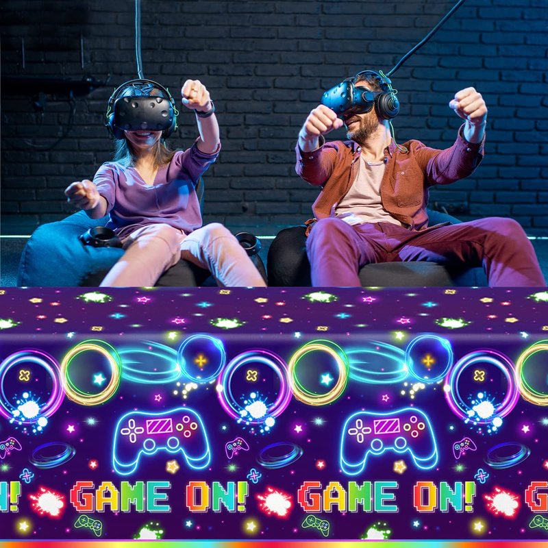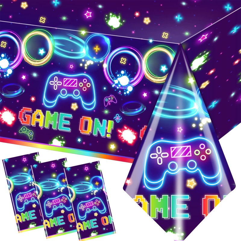 Pymurod 3pcs Video Game Table Cloth Game On Neon Gaming Birthday Tablecloths for Kids Boys Girls Video Game Party Decorations Favors Gaming Party Table Covers Supplies