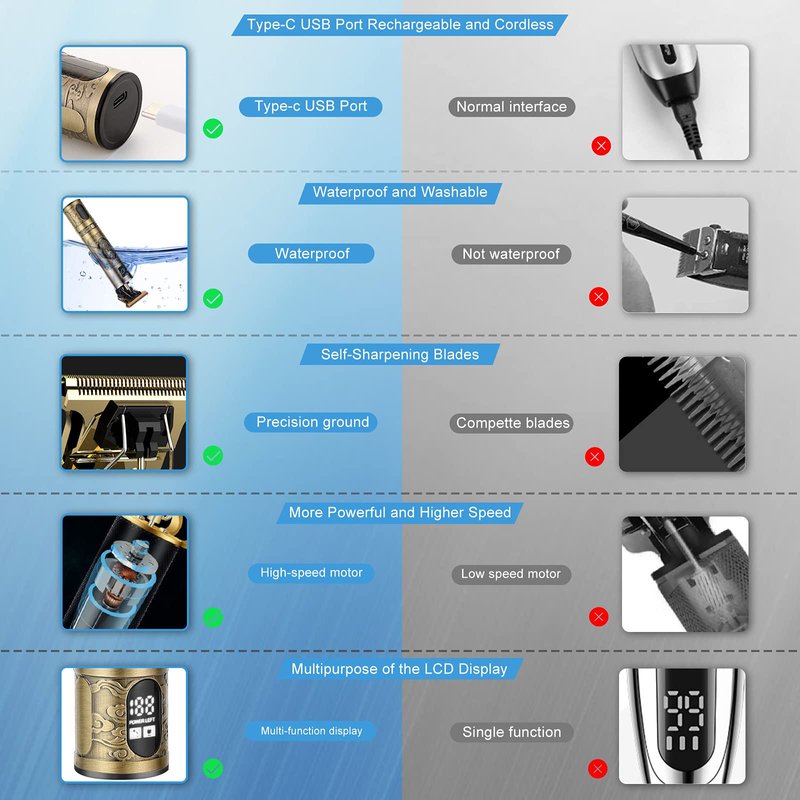 - 【After-Sales Service】 Multipurpose hair trimmer can be with cord or cordless which is super convenient for self-cutting. Our cordless hair clippers for men professional have 12-months warranty, please contact us if you have any questions or issues so that we can address any concerns you may have.