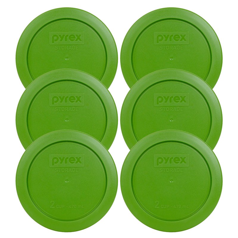 Pyrex Bundle - 6 Items: 7200-PC 2-Cup Lawn Green Plastic Food Storage Lids