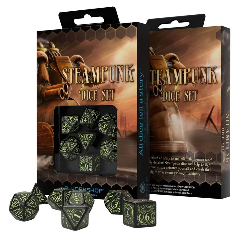 Q-Workshop Steampunk Black & Glow-in-The-Dark Dice Set (7)
