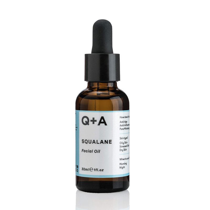 Q+A Squalane Facial Oil. A super hydrating, vegan facial oil derived from olive oil. 30ml/1fl.oz