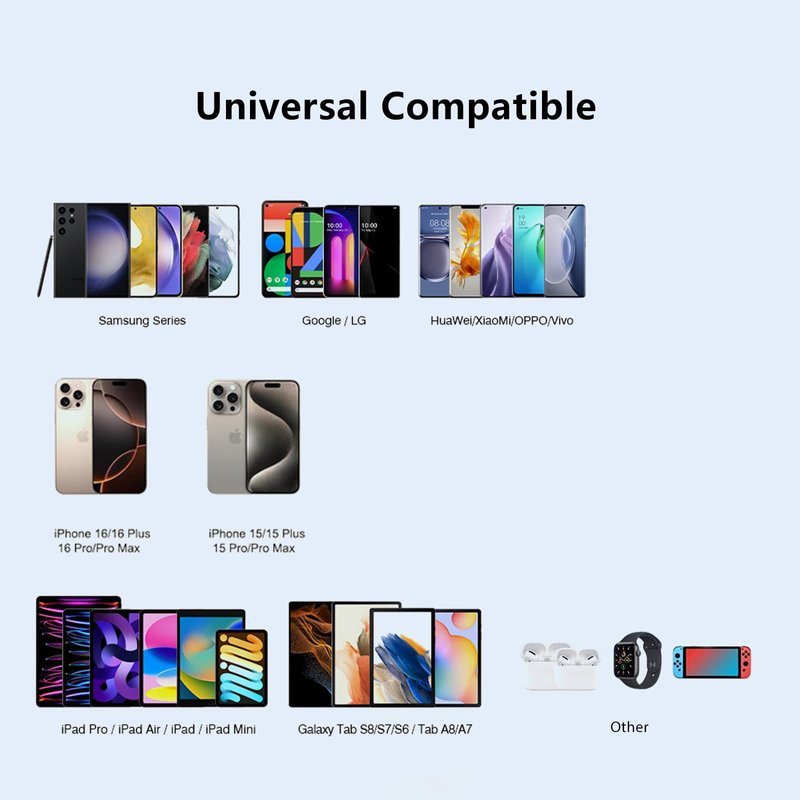 - 🎁【Widely Compatibility】Qackenm's USB C charger for iPhone 16/15 Pro/15 Pro Max/15 Plus, iPad Pro 12.9/11 inch 6th/5th/4th/3rd, 2022 new iPad 10th Generation, 2021/2020/2018 iPad Pro 12.9, iPad Air 5th/4th, iPad Mini 6. Also compatible with Samsung Galaxy S23/S22/S21/S20/S10 and Google Pixel 7 Pro/7/6 Pro/6a/6 and more.