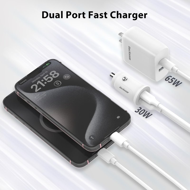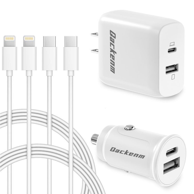Qackenm 65W USB C Dual Port Fast Wall Charger Block, Car Charger Fast Charging + 2pcs 6.6FT Cable + 60W Dual USB C Car Lighter Charger for iPhone 16/15/15 Plus/15 Pro, iPad Pro/Air/Mini, Pixel 8/7/6