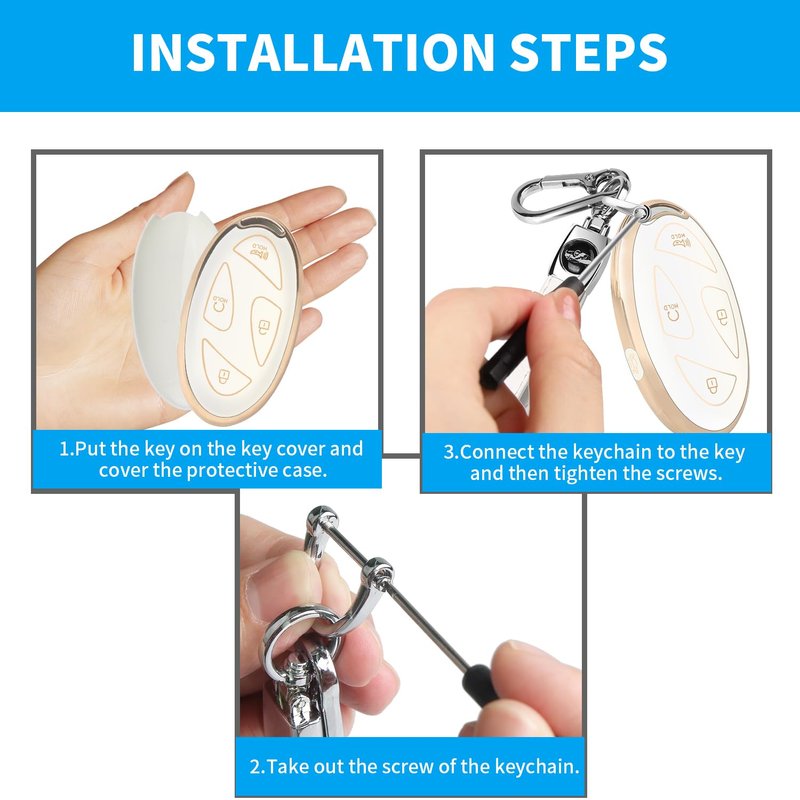 - ❤【KEY TPU COVER + KEYCHAIN】The package includes a key cover, a leather keychain and screwdriver. If you have any questions during use, please feel free to contact us at any time.