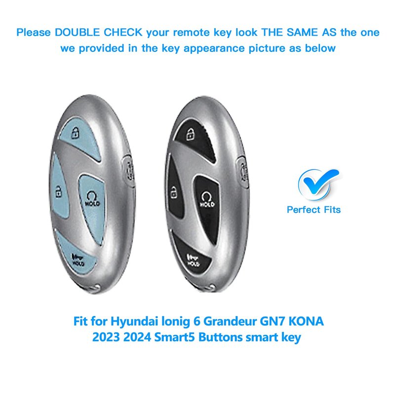 - ❤【FIT MODELS】This Smart Key Fob for Hyundai Ioniq 6 Grandeur GN7 KONA 2023 2024 Smart 5 Buttons Smart Key(Please refer to the product details page for specific information). Note: Please DOUBLE CHECK your key shape before place the order.