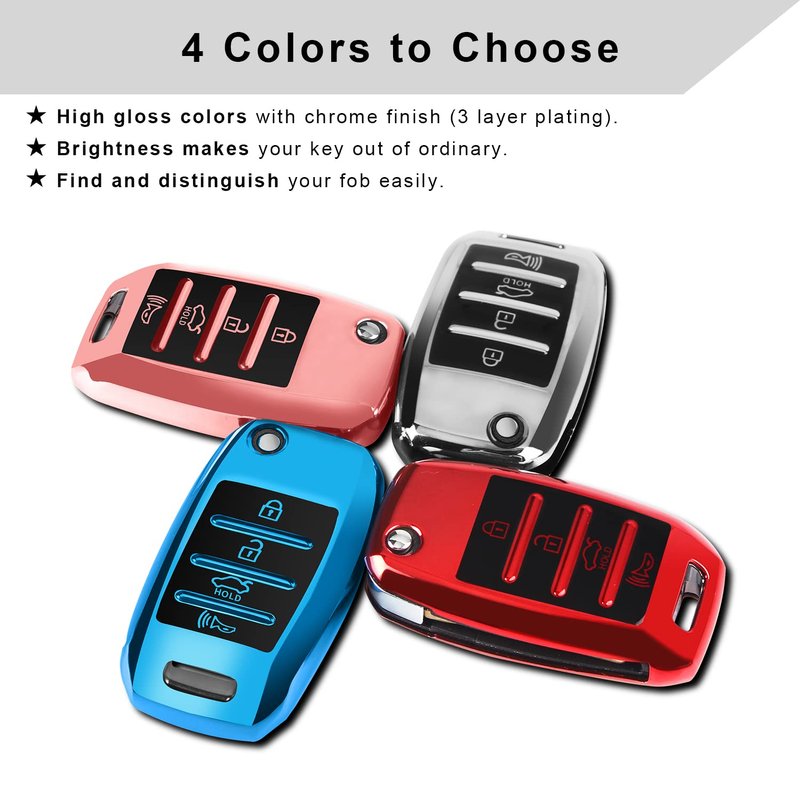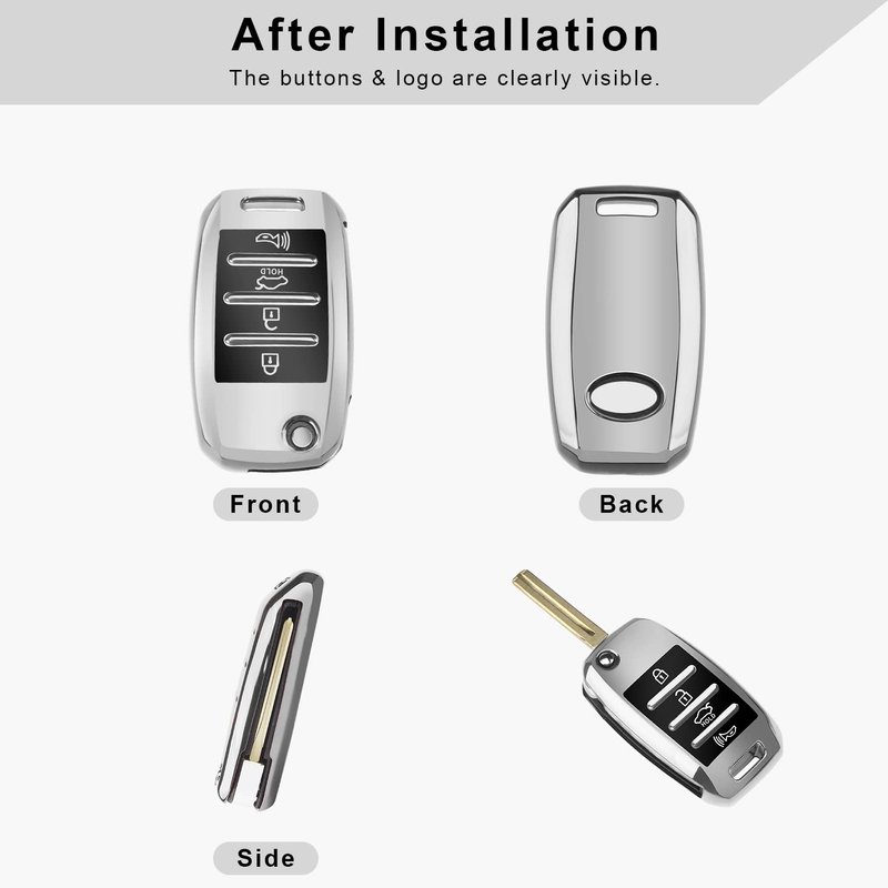 QBUC for KIA Key Fob Cover Case with Keychain for 2013 2014 2015 2016 2017 Kia Sorento Sedona Soul Rio etc (Flip/Folding Key)(Silver)