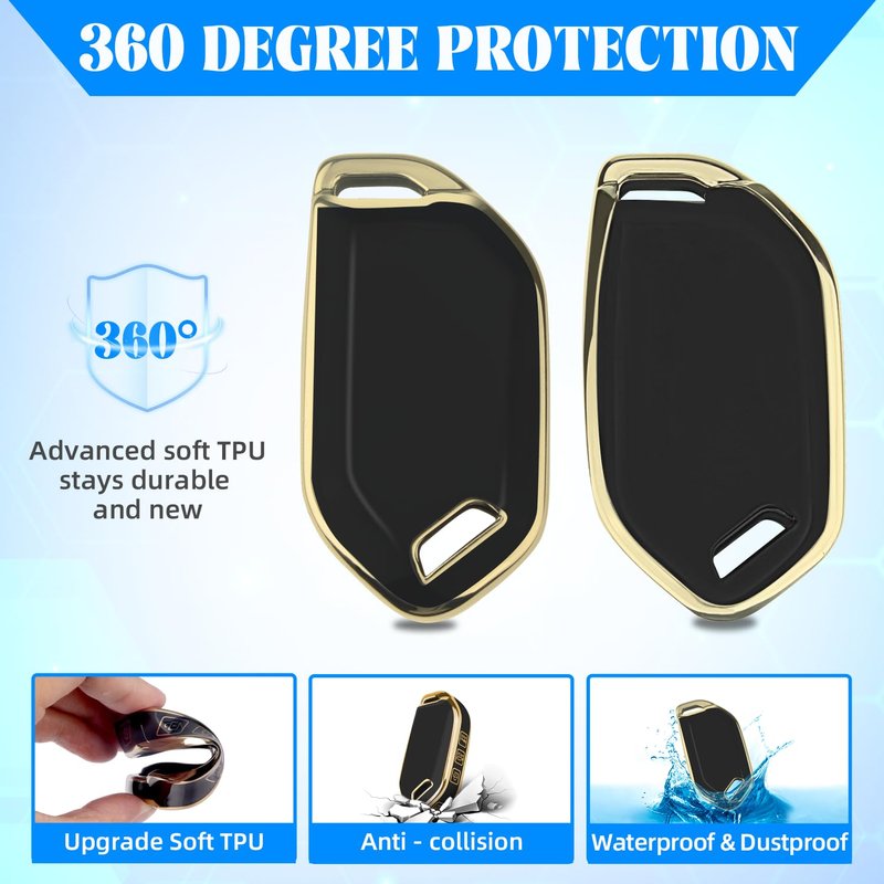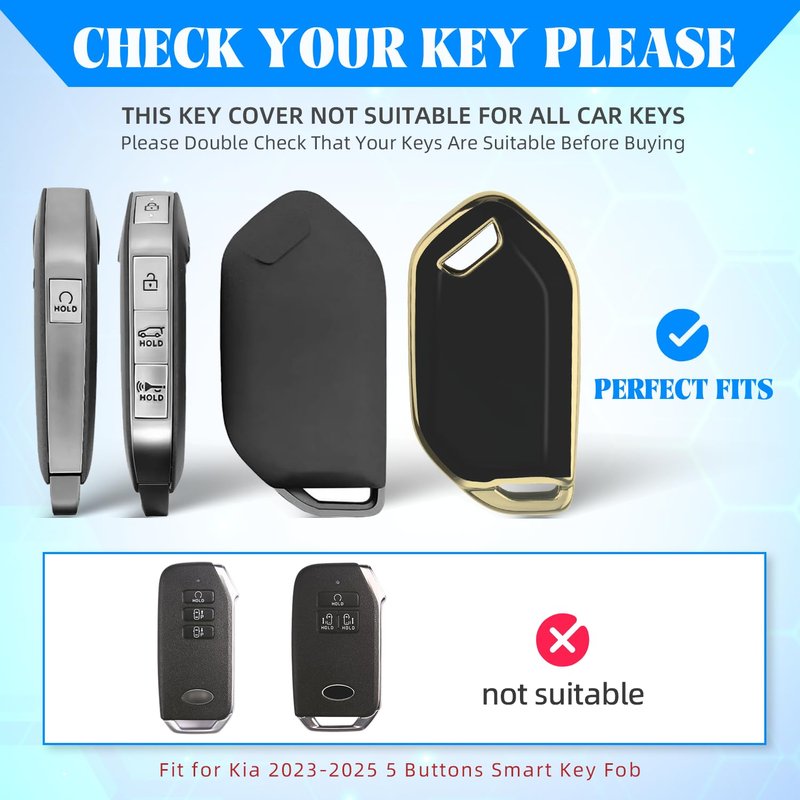 QBUC for KIA Key Fob Cover with keychian,TPU Protection Key Case Compatible with Telluride 2023 2024 2025 EV5 Sorento K4 K5 GT-Line Remote Smart Key Fob Protector (Gold-Black)
