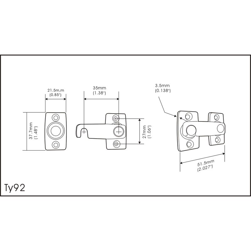Desc: Shutter Bar/Door Latch, Material: Solid Brass, Spec.: 7/8" x 2-3/32", Finish: Polish Brass, Qty: 1 Pack, Made in Taiwan