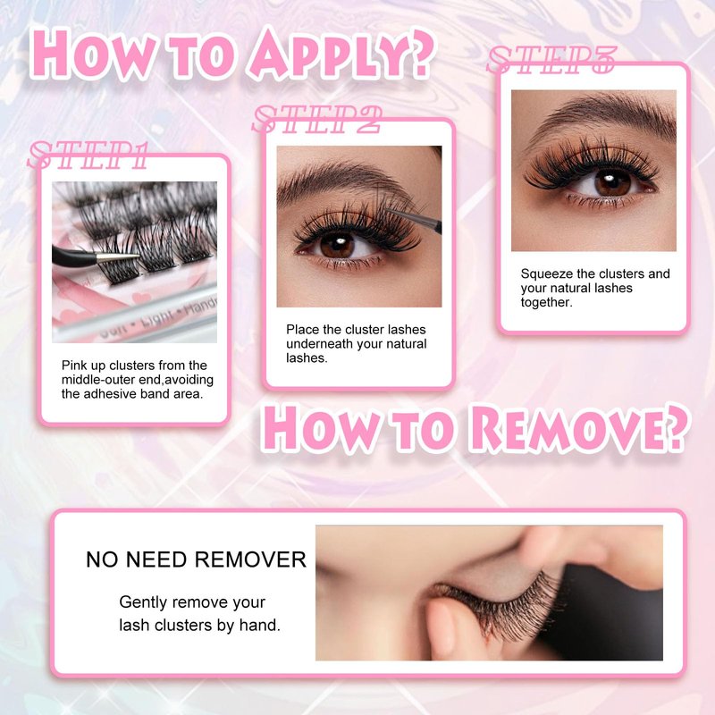 - 【Easy to Use】Applying these lashes is a breeze — just stick them on and you're good to go. There's no need to wait for the adhesive to dry or take effect. Moreover, these lash clusters can be conveniently carried in your bag, allowing you to change your makeup anytime and anywhere.