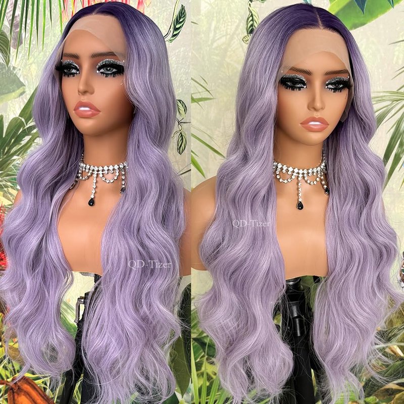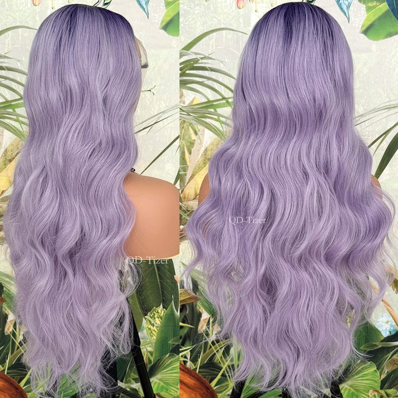 QD-Tizer Curly Purple Synthetic Lace Front Wigs for Women Omber Light Purple Body Wavy Long Hair Wig Pre-plucked Wear And Go Loose Curly Glueless Lace Front Wigs