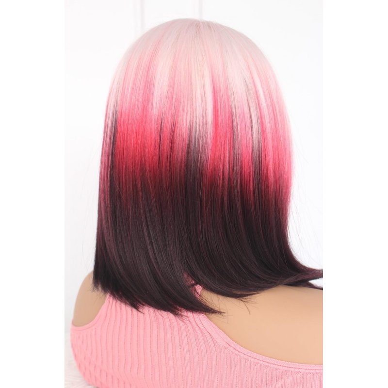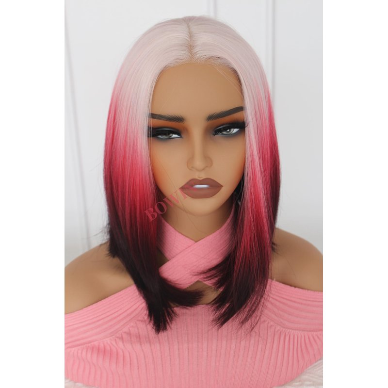QDBOWIN Wear Go Glueless Ombre Pink To Red Wig for Women Straight Lace Front Wigs Short Hair Bob Lace Wig